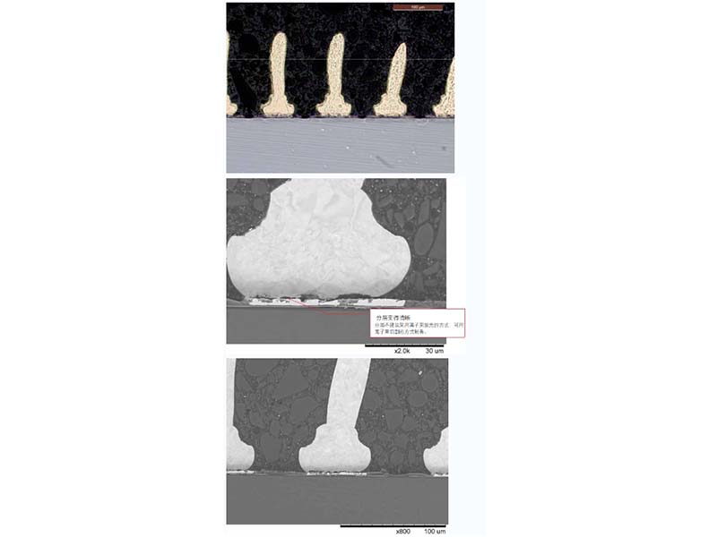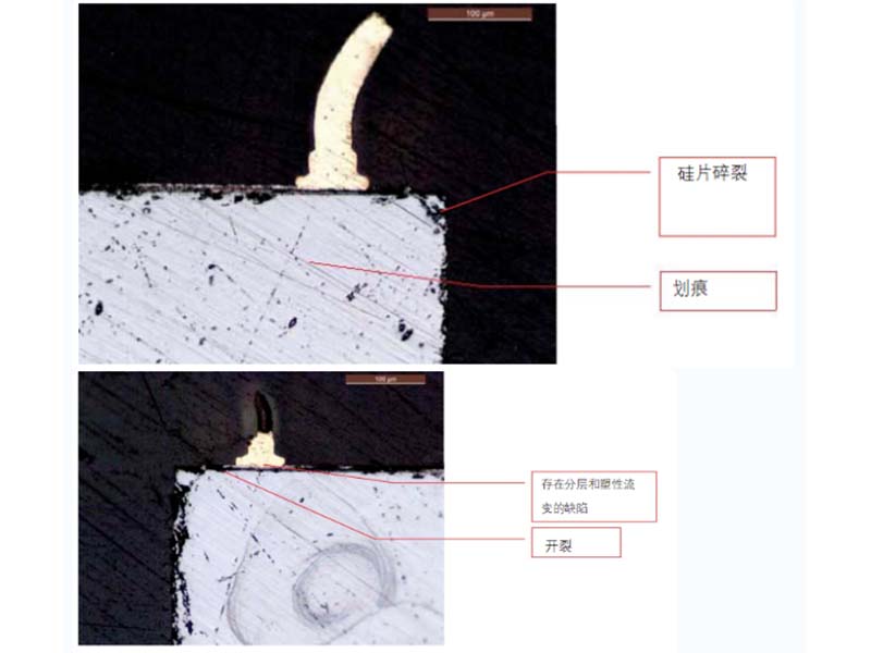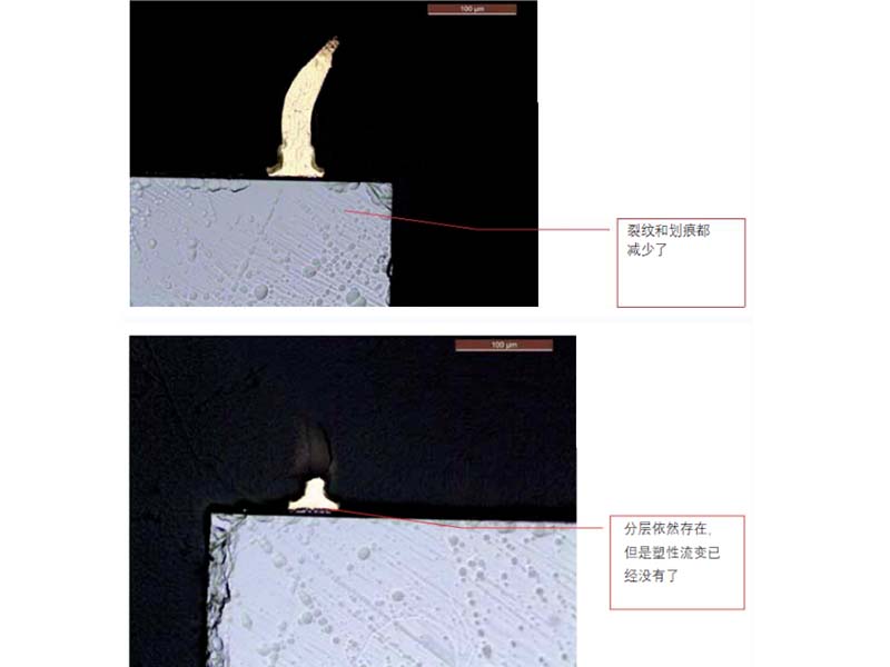 这个样品我们建议用徕卡精研一体机TXP做前处理,这样整排bonding wire都会显现,并且表面的抛光质量也会高很多。