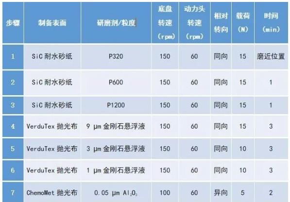 磨抛参数磨抛完成后,在徕卡DM4 M显微镜上进行观察。