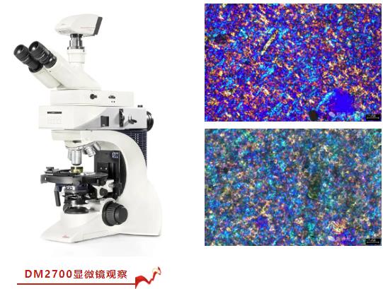 贺兰石薄片采用同样参数,磨抛至30微米厚,采用徕卡DM2700正交偏光拍照。