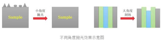 在离子束轰击时,由于硬的样品会比较难轰击,软的样品会比较容易轰击,故离子束抛光还存在衬度增强的作用,通过设置不同的抛光角度,可实现得到平整平面或衬度增强功能的选择。