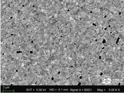 上图为仅机械磨抛后上电镜的陶瓷电容效果,机械抛光后表面存在与划痕同向的变形趋势,影响对晶粒相关信息的分析。而下图为一些徕卡离子研磨仪离子抛光后的效果示意图,可以发现完全消除了划痕的影响: