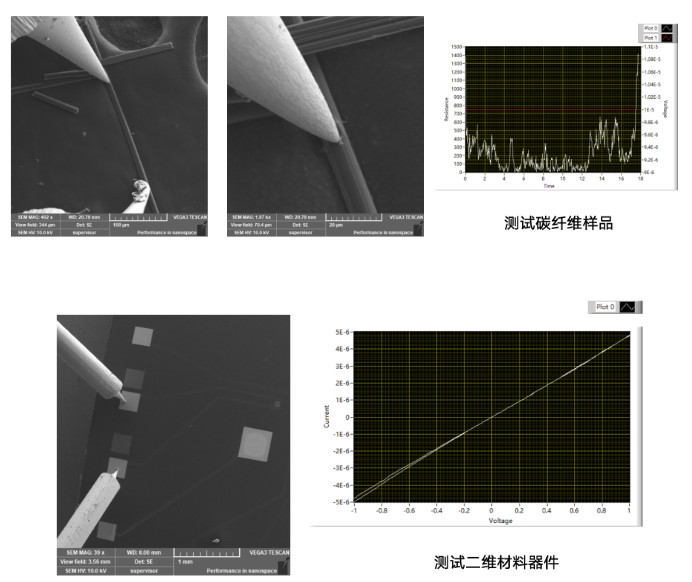 ▲ 应用:纳米材料操纵、纳米器件电学光电等物性测量、生物细胞DNA操作等