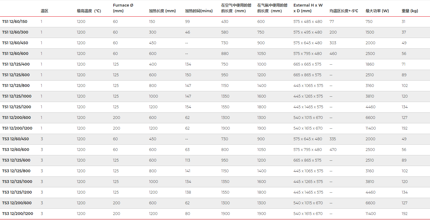 TS1 12/60/150 控温区数量: 1 区或3区